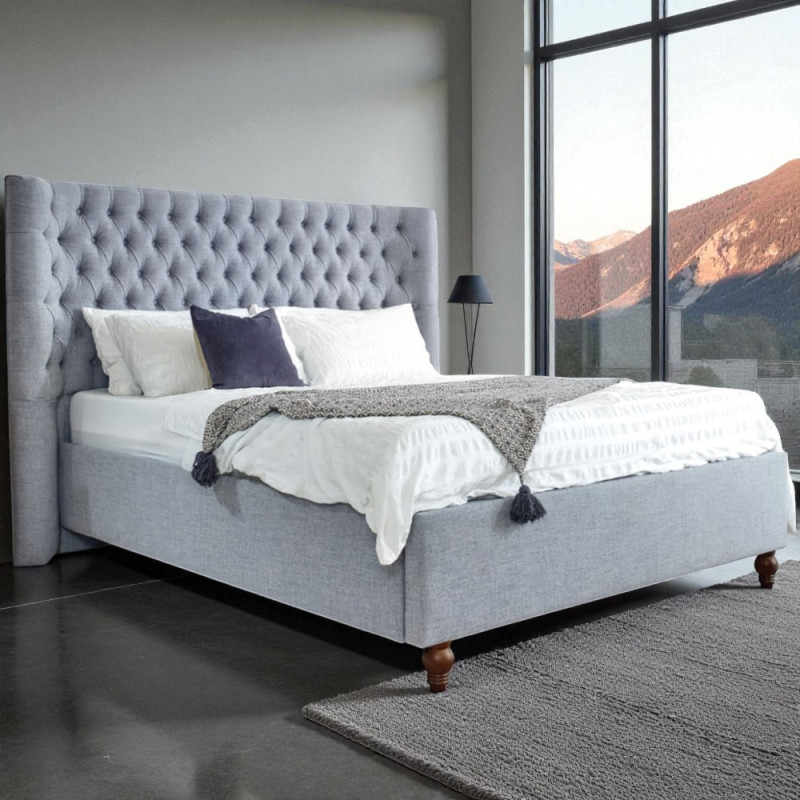Elegant, timeless, and beautifully crafted — the Diana Fabric Bed brings a touch of refined luxury to any bedroom. Featuring a tall, deep-buttoned headboard with classic winged sides, the Diana blends traditional charm with a modern twist. Upholstered in a soft-touch woven fabric, it delivers a perfect balance of comfort and sophistication, creating a calm and stylish focal point for your space.