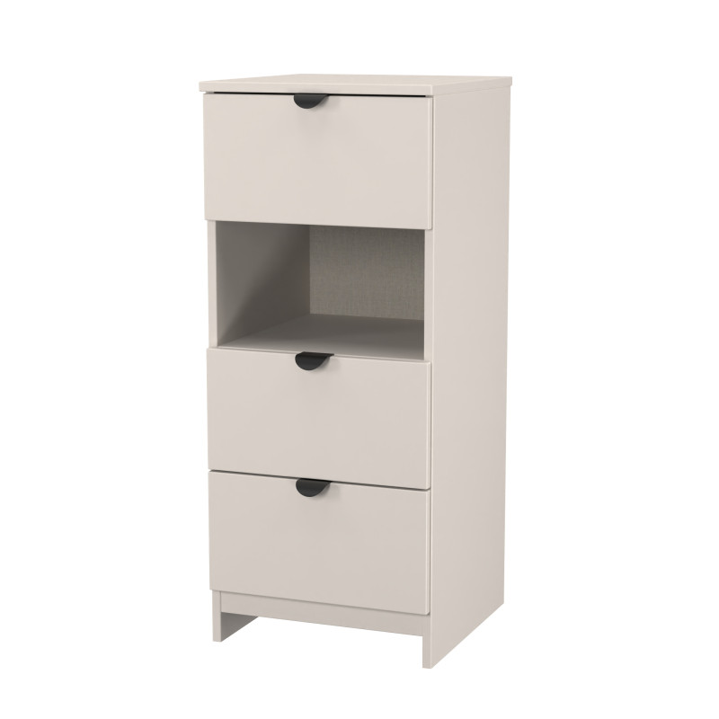 The Bora range is made from a solid MDF carcass with a durable scratch resistant vinyl finishing. The Bora range consists of high-quality - long-lasting drawer runners, a linen effect on the inside of all pieces of the collection and is finished off with a smart, modern design with a black handles.