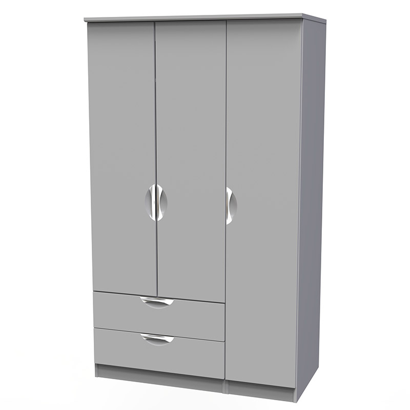 The Florence Tall Triple Combo Wardrobe is apart of our Florence Ready Assembled Bedroom Collection which is a design with such a boastingly clean, contemporary look and pleasing practicality. This furniture range makes a seamless addition to any modern looking space. All pieces are manufactured using a scratch resistant vinyl to help prevent the wear and tear that can come with everyday usage, and is complemented by distinctive, stunning cut-out handles and a smooth finish for a great mixture of style and functionality.