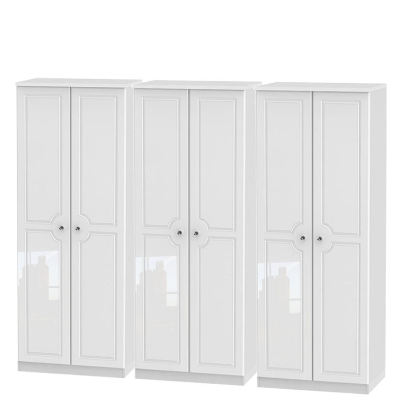 The Liberty Assembled 6 Door Wardrobe is part of a large assembled bedroom furniture range which is manufactured in the UK. This bedroom furniture range is factory built and comes with long lasting metal drawer runners as standard. This range features a choice between a stunning white hi gloss or white ash finish for that modern bedroom look. When choosing the large fitments don't worry about getting these upstairs as the wardrobes come in sections and once in a room of your choice they simply bolt together to make your own unique fitment, we have made some up for you to see but you can join any wardrobe. On this product choose between the standard feet or easy glide castors for ease of movement.