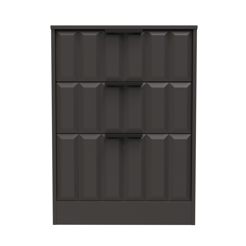 The New York range is made from a solid MDF carcass with a durable scratch resistant vinyl finishing. The New York range consists of high-quality - long-lasting drawer runners, a linen effect on the inside of all pieces of New York Bedroom Furniture & is finished off with a smart, modern design with a gold effect drawer handles.